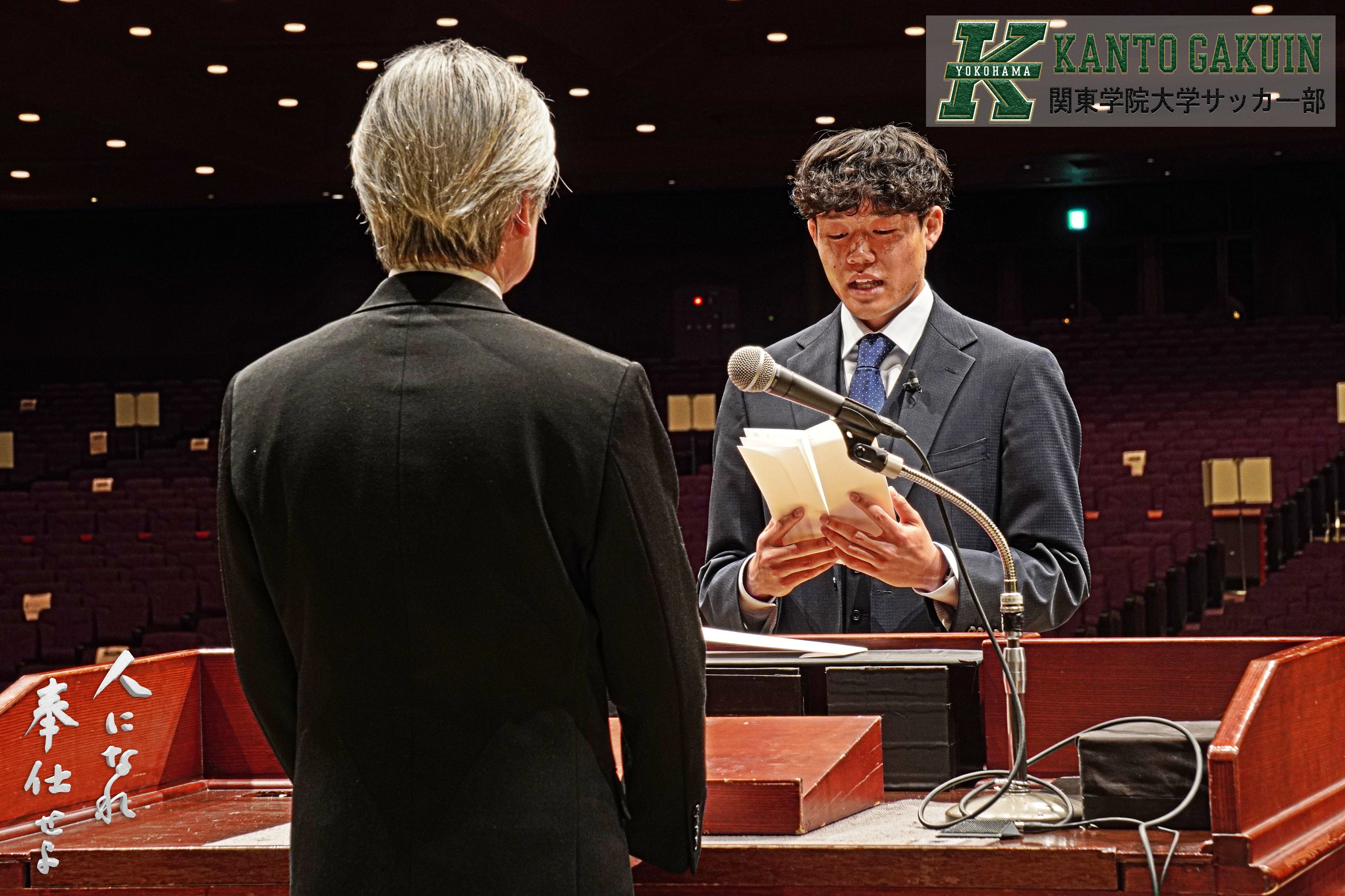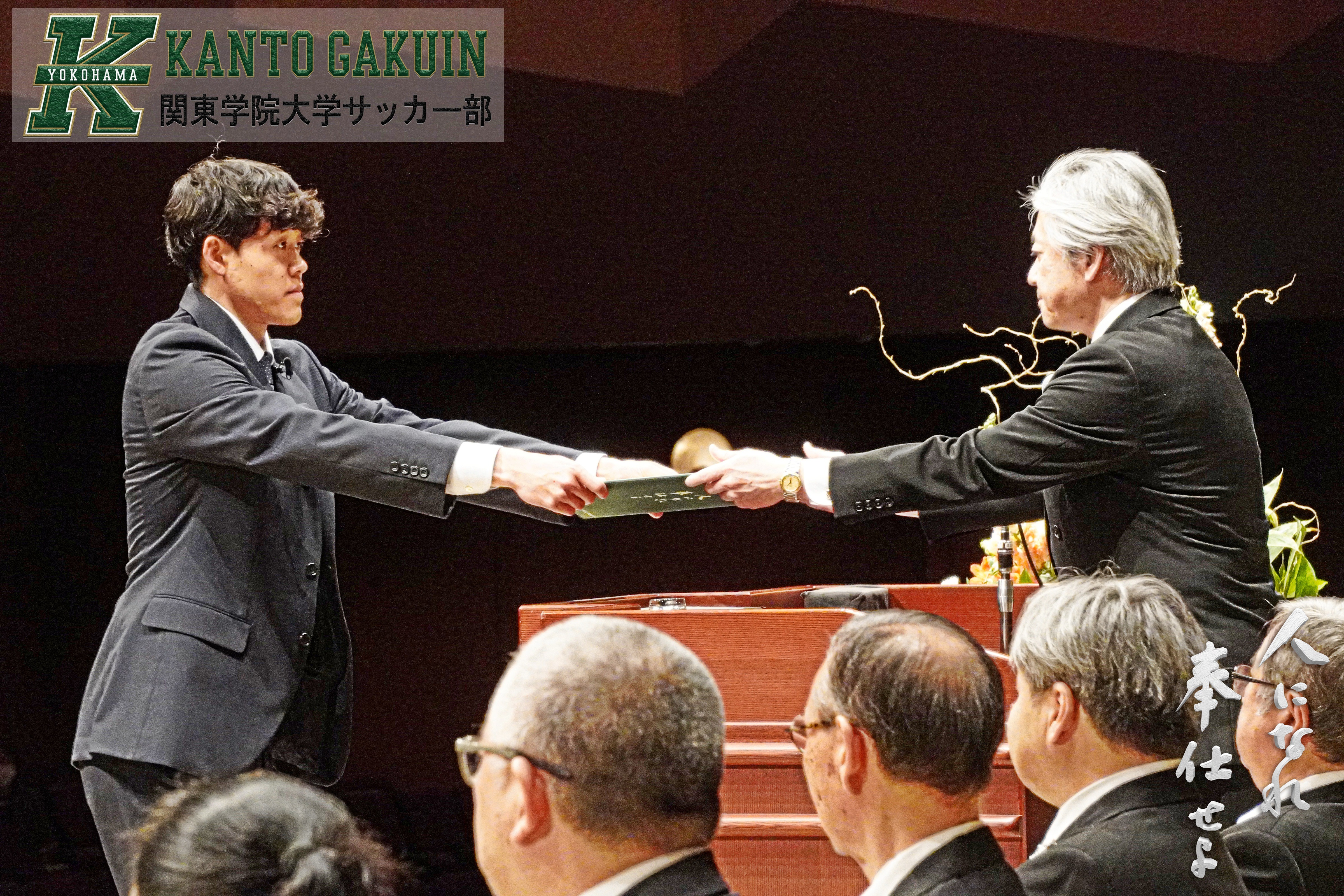 大役を果たし終えた斎藤選手の表情には、関東学院大学で4年間、サッカーだけでも学業だけでもなく、様々なものを学べるだけ学びぬいた充実感が浮かんでいました。